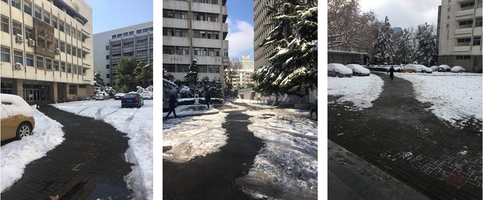 今晨,我院的10多名同事拿上鐵鍬、掃帚等工具,自發(fā)組成掃雪小分隊,積極加入到南京大學校園掃雪大軍中,鏟除校園及周邊道路的積雪,保障出行安全。
