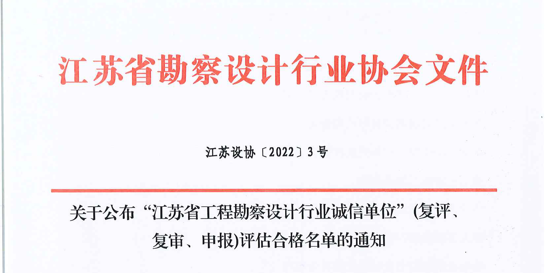 近日,集團(tuán)接到江蘇省勘察設(shè)計(jì)行業(yè)協(xié)會(huì)通知,經(jīng)專家評(píng)估、網(wǎng)絡(luò)公示和領(lǐng)導(dǎo)小組審定等程序,南大環(huán)規(guī)院集團(tuán)被評(píng)為江蘇省勘察設(shè)計(jì)行業(yè)“質(zhì)量管理先進(jìn)單位”及“誠信單位”。