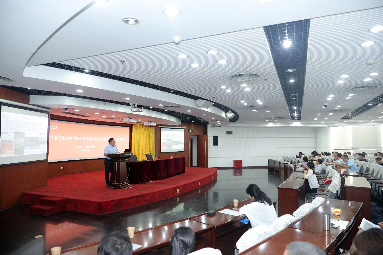 2022年6月23日,南大環規院集團常務副總裁吳俊鋒研究員受邀帶隊回訪江蘇開放大學,并做《應對氣候變化的中國路徑研究暨高校低碳發展方向探索》主題報告,江蘇開放大學牛玉韜副校長,張曉副校長,教務處、科技處、后勤處、基建處及環境生態學院、建筑工程學院等5個院系的主要領導及教師出席講座。