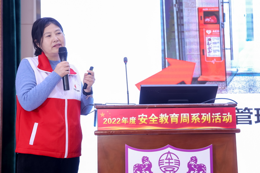 線下培訓涉及應急救護知識、工作期間安全知識、消防安全知識三個部分。首先由江蘇省紅十字會專家團隊進行應急救護培訓,專家深入講解了心肺復蘇、氣道異物梗阻、創傷救護等應急救護知識,并現場演示了常用的應急救護手法和心肺復蘇操作。