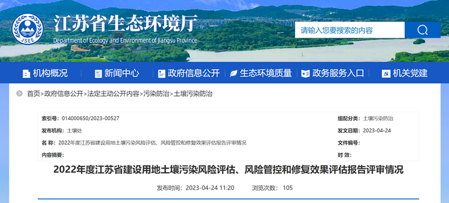2023年4月24日,江蘇省生態環境廳公布了2022年度江蘇省建設用地土壤污染風險評估、風險管控和修復效果評估報告評審情況,我院所有報告均一次通過評審,通過率100%,位居全省前列。
