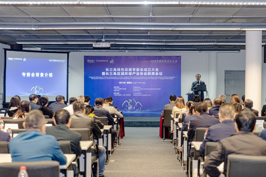 4月19日,上海市環境保護產業協會長三角綠色發展專委會成立大會在25屆中國環博會期間舉辦。上海市生態環境局綜合規劃處處長魏峻、四級調研員唐煒,長三角示范區執委會生態規建部副部長李程,長三角區域環保產業協會領導、省市環科院領導蘇國棟、陳志鵬、尹文德、伏晴艷、張瀏、張磊,南大環規院董事長吳俊鋒等領導,以及上海建工集團、江蘇省環保集團、安徽省環保集團、浙江環科等30家專委會成員單位代表參會。